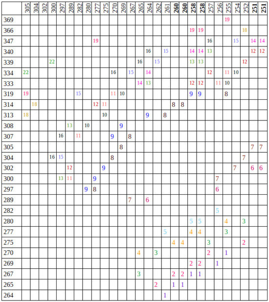 The number of backtracking events required is small most of the time, but has a steep jump for the two difficult instances. In decreasing order, the top 5 numbers of backtracking events were 66,975, 65,916, 299, 102, 42. Most of the time, the number of backtracking events was one-digit, and was zero in exactly 24 instances, two of which were already solved in the pre-processing phase. That is more than a quarter of all instances. In contrast, there is a considerable number of branching steps: at least 157 when , and at least 73 when . This suggests that the heuristic rule for selecting the triplet at the branching step works effectively in most of the time. However, there are still cases where a wrong decision drives the algorithm into a very long branch, as happened for the two difficult instances.