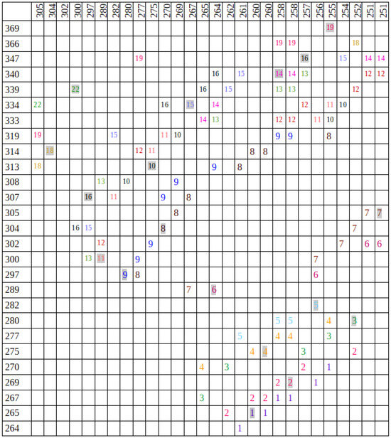 The backtracking method finished all 80 problem instances in s. There were two instances which turned out to be difficult: for , , the runtime was s, and for , the runtime was s. Notably, the other 78 problem instances required 78 ms altogether.