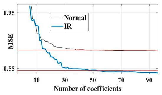 As a method for choosing the number of LPC coefficients, we can also propose an analog of the “elbow” method, which is a common heuristic in mathematical optimization used to identify a point where diminishing returns are no longer worth the additional cost. Figure 5 shows the dependence of the mean squared error