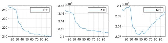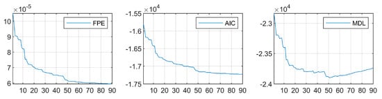 Here, is the number of samples, is the estimation of the variance in the residual, and is the order of the model. Note that sometimes other definitions can be found; for example, in the work [41], the loss function for is determined by the formula