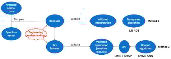 Figure 7. The process of validating explanations with engineering understanding. - Method 1: interpretability assessment for transparent algorithms. Method 1 was applied to transparent ML algorithms, such as linear regressions (LRs) and decision trees (DTs), where model components inherently lend themselves to interpretation. Here, a residual table (Table 3) was employed to validate model interpretations. Interpretability stems from analysing feature coefficients for LRs, while it originates from diagnostic rules based on feature splits for DTs. The alignment between residual data and model outputs establishes the interpretability of these transparent algorithms.