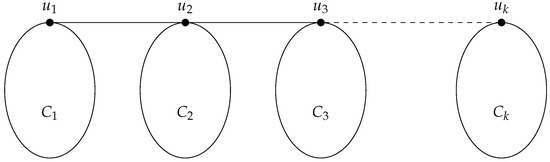 In this section, we study the broadcasting problem in path-connected cliques, a graph defined on n vertices and containing k cliques of arbitrary sizes , with neighboring cliques being connected by an edge. Path-connected cliques can be classified as block graphs since the edge connecting two neighboring cliques is also a clique .