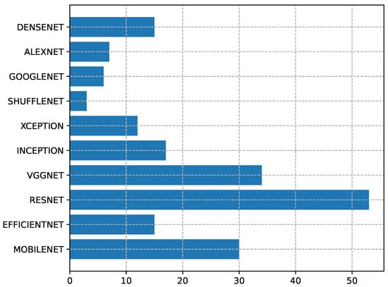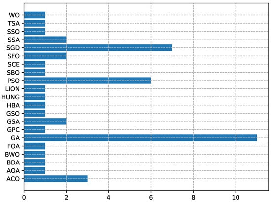 Histogram showing the usage of the algorithm typology in the analyzed studies.