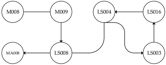 For a smart home SH, let FA(SH) = {Bedroom, Toilet, Kitchen, Living Room, Shower Room}. Let SEN(SH) = {M008, M009, LS008, LS004, LS003, LS016, MA008}, where SC(SH) = {M, LS, MA} represents the categories, with {M008, M009} as infrared motion sensors (M), {LS008, LS004, LS003, LS016} as light sensors (LS), and {MA008} as wide-area infrared motion sensors (MA). Let DAC(SH) = {Sleep, Bath, Cook_ Breakfast} represent daily activities. Table 1 presents a fragment of a sensor event stream activated by the “Sleep” activity, where each line denotes a sensor event. Two adjacent sensor events are direct predecessors or direct successors of each other.