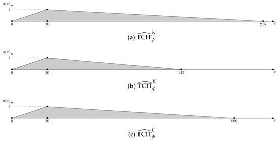 Arithmetic operations on TFNs are defined based on the Extension Principle [46], so for two TFNs, and , the sum is a TFN defined as follows: