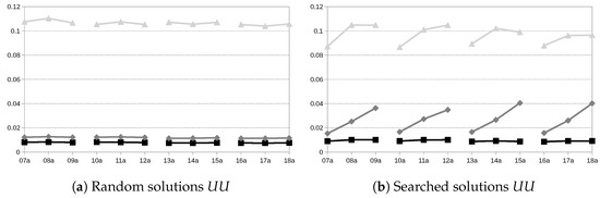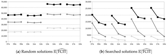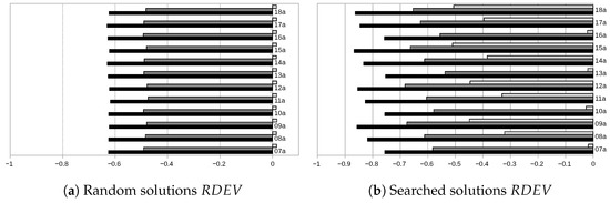 The study follows the methodology proposed in [26]. For each instance, schedules will be generated and compared in terms of their performance regarding using first the measures introduced in Section 2.3.1 and then those introduced in Section 2.3.2. In both cases, this will be done with two types of experiments: over random solutions and with solutions obtained with a search algorithm. The goal of the random-solution experiments is to evaluate the three alternatives for computing without the possible bias that may be introduced via any solver, whereas the searched-solution experiments pretend to compare the three models when embedded in a search algorithm, with the objective of evaluating their capability of guiding the search towards good schedules. In both sets of experiments, 100 schedules are obtained per instance; notice that, for the searched-solution comparisons, this means generating 100 schedules for each of the three models (, and ) under consideration.