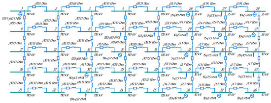 In [61], the non-homogeneity of an electrical network is understood as the constancy of the value of the ratio of active resistance to inductive resistance (Rij/Xij) for any section of the network (i, j, …, n, i ≠ j). However, this is not enough, since there are other factors that influence the occurrence and development of cascading failure processes.