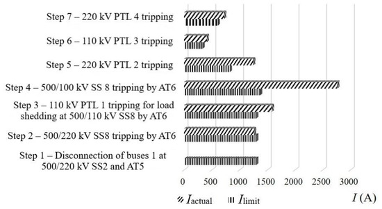 The emergence and subsequent development of a cascading process in an EPS require that Inequality (1) is satisfied in the event of heavy-load conditions with the shutdown of EPS equipment in each step: