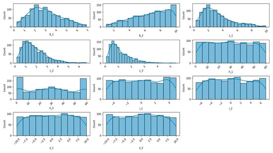 Figure A5 illustrates the meshing algorithm’s result on the symmetry plane. Two meshing parameters are needed to fully define the volume-meshing scenario, including a global growth rate, which is set to 1.2, and a maximum element length, which is equal to the parametrized value , similar to the surface meshing scenario.