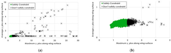 Design variable constraints have been defined to exclude unrealistic wing geometries such as having taper ratio values larger than 1, wings with very thin sections that would be impossible to manufacture, or wings with excessive aft and forward sweep angles (Figure 3). These parameters, combined with constraints, ensure that the design space remains realistic and aligned with established aerodynamic standards.