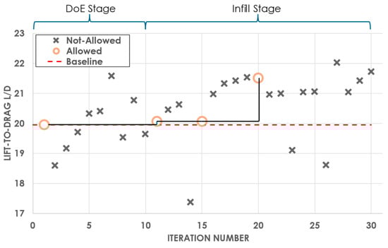 - Parekh, J.; Bekemeyer, P.; Helm, S.; François, D.G.; Grabe, C. Surrogate Based Design Space Exploration and Exploitation for an Efficient Airfoil Optimization under Uncertainties Using Transition Models. Aerosp. Sci. Technol. 2024, 154, 109532. [Google Scholar] [CrossRef]