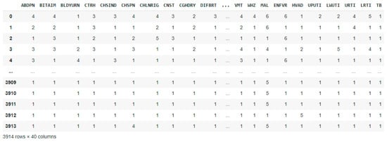 | 14 | Difficulty breathing | DIFBRT | 46 | Sore throat | SRTRT |