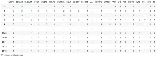 | 10 | Difficulty breathing | DIFBRT | 29 | Suprapubic pains | SPPBPN |