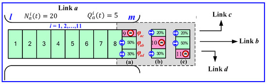 If N × φ9, N × φ10, and N × φ11, then and . This indicates that the upstream cell will allocate vehicles only to cells 10 and 11.