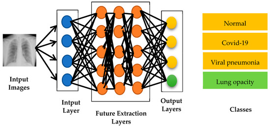 In this essential step of the proposed approach, as illustrated in Figure 5, the pre-trained CNN models for input image classification are performed which are VGG16, VGG19, Resnet50, EfficientNetB7, MobileNetV2 and Mixnet. This step requires a great deal of time and expertise to manually extract the relevant features from the images. However, with the development of CNN models, this step has become automated and more efficient.