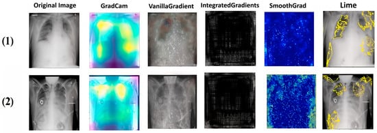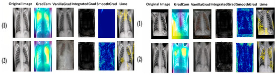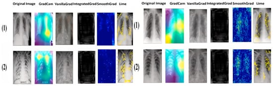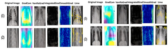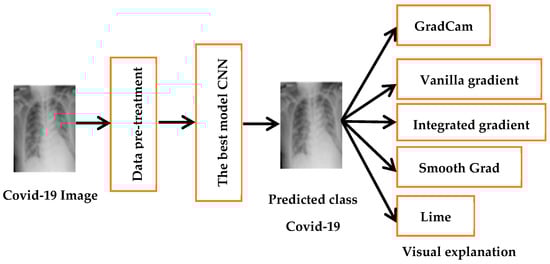 The need to explain deep learning-based methods is increasing as the number of such approaches grows, especially in the high-stakes decision-making field of medical image analysis [7]. The findings of the DL system are explained and interpreted for easy comprehension by medical professionals, which can help them to diagnose COVID-19, tuberculosis and pneumopathy quickly and accurately [8]. For this reason, the XAI algorithms currently in widespread use: Vanilla Gradient, Integrated Gradient, LIME and GradCAM are used in this work.