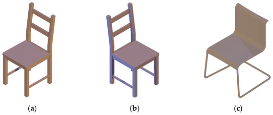 First, we downloaded an open dataset [38]. This dataset consists of over a hundred 3D furniture models. Among them, 29 objects, including chairs, stools, and sofas, were selected for our viewpoint screenshot experiment.