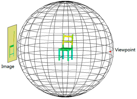 After selecting viewpoints using Algorithm 1, the dataset for image viewpoint estimation can be constructed. We utilize 3D models to perform parallel projection based on the specified viewpoint directions, thereby generating 2D projection images. This process is illustrated in Figure 6.