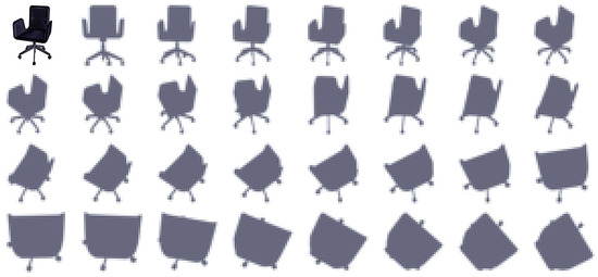 Finally, we utilized Algorithm 2 to generate images based on these specified viewpoints. The dataset used in our experiments consists of 31 viewpoint classes, each with 29 images. Therefore, the generated dataset consists of 899 images divided into 31 categories, with 29 images per category. Figure 9 presents 31 images of the same object projected from 31 different viewpoints.