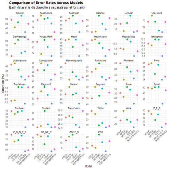 A wide range of practical problems can be considered as classification or regression problems. Such problems occur in areas such as physics [1,2], astronomy [3,4], chemistry [5,6], medicine [7,8], economics [9,10], etc. A machine learning tool commonly used to tackle such problems is the radial basis function (RBF) network, expressed as the following function: