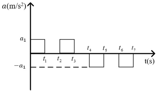 From Equations (24), (25) and (33)–(38), the acceleration amplitude and acceleration switching time of the trolley can be calculated.