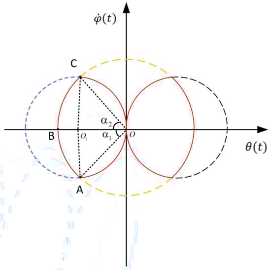 It can be seen from Equations (8) and (9) that the input of the system is less than the degree of freedom of the system; therefore, the system is an underactuated double pendulum system. Due to the existence of two swing angles, the state of the crane system is more complicated than that of the single pendulum system. The underactuated characteristics of the crane make it impossible to directly plan and , and there is a nonlinear relationship between the two angles, making it impossible to directly derive the exact relationship between them.