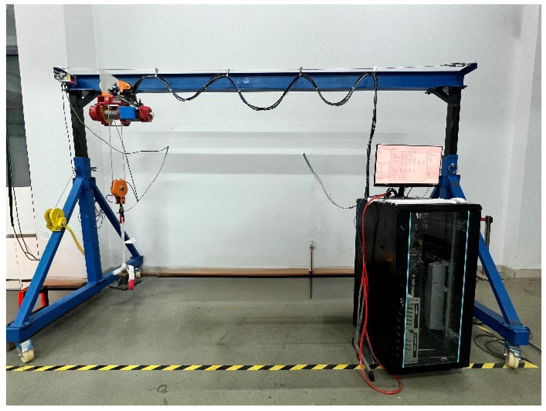 - Shan, L.; Fei, G. Research and application of anti-sway control system in container lifting equipment. Hoisting Conveying Mach. 2011, 10, 51–55. (In Chinese) [Google Scholar] [CrossRef]