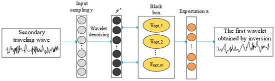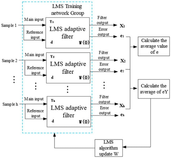 The inversion process is shown in Figure 2. In the figure, y’ is the secondary signal after preprocessing and is the best weight at time m. The schematic diagram of the adaptive filter is shown in Figure 3.