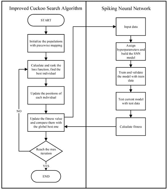 Therefore, biomimetic algorithms are good choices to find better hyperparameters, which can be inspired by the corresponding characteristics of biological systems, providing new design ideas and principles for engineering technology. The CS algorithm is a typical representation of them. But the combination of the original CS and SNNs is not satisfactory enough. Therefore, we proposed the ICS algorithm.