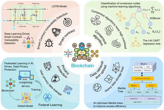 With its efficient data processing, autonomous learning, and advanced pattern recognition capabilities, AI has become a key driving force in the advancement of blockchain technology, with applications spanning edge computing, big data monitoring, supply chains, digital twins, and metaverse exploration. He et al. [17] emphasize that blockchain, due to its decentralized, trustless, and immutable nature, is well suited for edge-centric IoT scenarios while also highlighting the integration of AI into edge computing. Islam et al. [18] propose a blockchain-based AI-driven initiative that utilizes drones for pandemic surveillance, demonstrating the feasibility of autonomous monitoring. D’Souza et al. [19] introduce a secure pharmaceutical supply chain management system that leverages blockchain and AI, incorporating the Rasa chatbot to enhance functionality. Suhail et al. [20] conduct a comprehensive survey on blockchain-based digital twins, discussing research trends, advantages, and challenges in this field. Guergov et al. [21] analyze the convergence of IoT, AI, and blockchain, underscoring the necessity of hybrid models for seamless integration. Yang et al. [22] explore the intersection of blockchain, AI, and the metaverse, highlighting the potential for interdisciplinary research and collaboration. Furthermore, Kumar et al. [23] examine the applications and benefits of integrated AI and blockchain platforms across various business verticals, identifying ten key areas with significant potential advantages. Junaid et al. [24] investigate advancements in emerging technologies, including IoT, AI, and blockchain, with a particular focus on healthcare, emphasizing their critical role in healthcare management systems. Finally, Xu et al. [25] highlight the role of key enabling technologies, such as digital twins, AI, and blockchain, in the development of digital twin-driven Industrial Internet of Things applications.