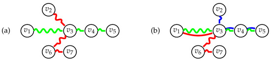 Definition 1. Let and be two paths in a graph G. We say that the paths and cross each other if there is a common vertex such that for arbitrarily small we find that contains points from more than one component of , where is the disk at v with radius ϵ, and this disk is cut along the path . In this case, we say that and cross at vertex v.