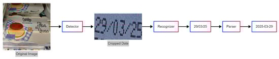 The comprehensive workflow is illustrated in Figure 1. Initially, the detector identifies the date segment from the source image. This segment is then transmitted to the recognizer for date identification. Following this, the date parser translates the date into a comprehensible format—specifically, year, month, and day. Ultimately, the system provides the simplified date.