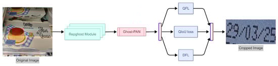 In this study, the backbone network is tasked with deriving features from the input image, utilizing the Repghost module [] as the foundation. Compared to the Ghost module [], this choice lowers computational demands on hardware while delivering enhanced accuracy with fewer parameters and similar latency, which is advantageous for mobile devices. Unlike the Ghost module, the RepGhost module eliminates the use of the inefficient concatenation operator, which considerably reduces inference time. Additionally, the process of information fusion is implicitly handled by the add operator rather than delegating it to other convolutional layers. Ghost-PAN [] substitutes the traditional Feature Pyramid Networks (FPNs) due to the substantial computational load of typical FPNs. The network head produces three outputs: quality focal loss (QFL), distribution focal loss (DFL), and GIoU loss. QFL and DFL are based on generalized focal loss []. QFL is designed to refine both the classification and localization aspects of object detection, enhancing its effectiveness in dense object detection tasks. QFL, in particular, targets improving classification by emphasizing hard-to-classify samples. The QFL function is defined as (1)