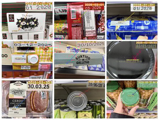 Researchers and developers are increasingly dedicating their efforts to creating fast, accurate, and reliable methods for expiration date detection. These innovations not only improve the lives of visually impaired individuals but also contribute to the broader goal of inclusive technology that benefits everyone. In the computer vision field, notably, the convolutional neural network (CNN) yields promising results in practical applications: Ref. [] developed a deep learning framework with 97.74% accuracy for recognizing expiration dates on product packages. The framework includes three networks: a date detection network, a day–month–year (DMY) detection network, and a recognition network, and it handles 13 date formats and challenging conditions like varying fonts and blurring using a publicly available dataset called ExpDate. Ref. [] proposed a novel system to help visually impaired individuals recognize expiration dates on beverage packages. The system captures an image of the product taken by the user, processes it using a Spatial Transformer Network (STN) to handle skewed, misaligned, or partially missing date images, and then utilizes a dedicated convolutional neural network (CNN) for final recognition. The system achieved high recognition rates of 99.42% for images without spaces and 98.44% for images with spaces. Ref. [] proposed an enhanced method for optical character recognition (OCR) to detect and recognize expiry dates on food packages. This method uses an improved DBNet combined with a Convolutional Block Attention Module (CBAM) to better extract character features in complex contexts. The improved model shows high accuracy and robustness, achieving a character detection accuracy of 97.9% and a recognition accuracy of 97.8%. The system has been successfully deployed on the NVIDIA Jetson Nano, enhancing its practical applicability in the food packaging industry.
