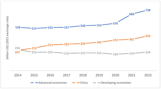 As governments, businesses, and individuals recognize the imperative to transition away from fossil fuels, investment in RE projects like solar, wind, and hydroelectric power has skyrocketed [5,8], as presented in Figure 1. According to the International Renewable Energy Agency (IRENA), global renewable energy capacity increased by 10.3% in 2021 alone, with investment reaching a record USD 303.5 billion [9]. As shown in Figure 2, the data underscore the increasing importance of renewable energy investments globally, with both established economies and emerging markets recognizing the benefits of transitioning to cleaner energy alternatives. It also emphasizes the crucial role China plays in shaping the renewable energy landscape. However, the varying trajectories of investment among the different categories highlight the complex interplay of economic, political, and environmental factors that influence decision making in the renewable energy sector. This robust momentum is mirrored in the South Asian context, where countries like India are emerging as renewable energy leaders. India, for instance, has set a goal to achieve 450 GW of RE capacity by 2030, with an investment goal of USD 500 billion [10]. This commitment has spurred a surge in solar installations and wind farms across the country, transforming its energy mix and reducing dependency on coal. Within South Asia, other nations are also making noteworthy strides. Bangladesh, despite facing energy poverty challenges, has embarked on an impressive journey by installing one of the largest solar home systems globally, benefiting millions of households [11]. In the Association of Southeast Asian Nations (ASEAN), this surge is particularly evident, reflecting a growing recognition of the imperative to diversify energy portfolios and promote sustainable growth [12]. As economies in the region continue to expand, the demand for energy is soaring, prompting many ASEAN member states to embrace renewable alternatives [13]. For instance, Thailand has emerged as a regional leader, with goals to generate 35% of its total energy from renewable sources by 2037 [14]. Similarly, Indonesia, with its abundant geothermal potential, is investing significantly in this clean energy source to meet its burgeoning energy demands while reducing its carbon footprint. According to data from the ASEAN Centre for Energy, the region’s total renewable energy capacity increased by over 60% between 2014 and 2019, underlining the substantial progress made [14].