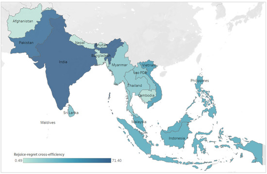 Map of rejoice–regret cross-efficiency in South and Southeast Asia.