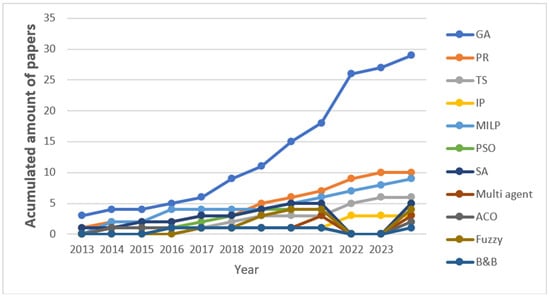 | Meta-heuristic | GA | [14,15,16,23,24,26,32,34,35,36,37,39,44,45,48,50,52,54,56,69,70,75,76,79,81,82,83,84,85] |