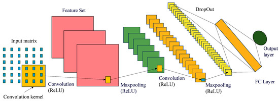 where is the feature outputs obtained from the convolution kernel after full connectivity, is the vector of weights, is the bias vector, is the activation function. They use the ReLU activation function. The CNN schematic is shown in Figure 2.