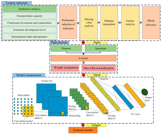 However, due to weather, policy, and other reasons, sea–rail transportation faces inefficiencies, and these problems lead to the accumulation of cargo in ports and the waste of energy [5]. In response to this problem, a reasonable container throughput forecast could enable a port to layout scheduling in advance and improve the overall efficiency of the port, which could effectively solve this problem. Considering the high-dimensional nonlinear coupling effect and spatiotemporal dynamic characteristics among the multidimensional influencing factors affecting the throughput of sea–rail intermodal containers, traditional time series models that rely solely on historical throughput data have low prediction accuracy. Therefore, this article proposes a prediction method based on multi-indicator feature fusion to improve the accuracy of container throughput prediction.