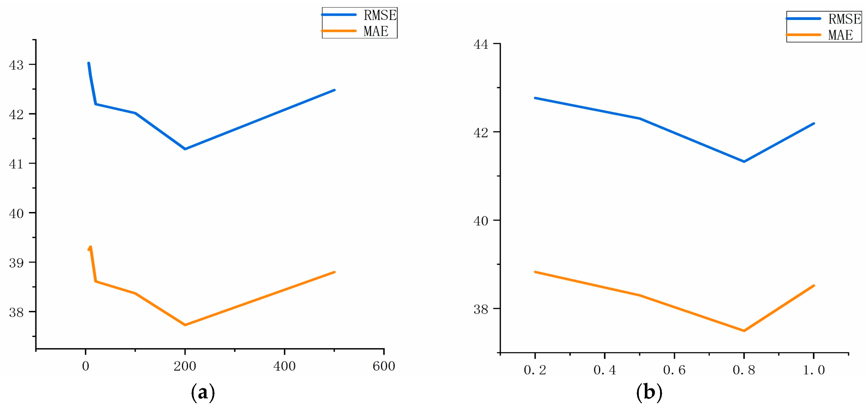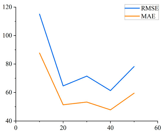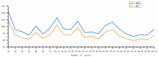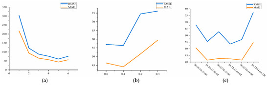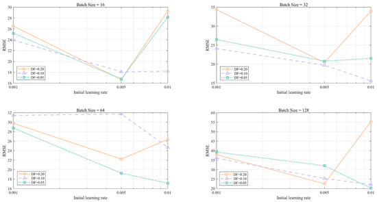 Based on the above parameter combinations, numerical experiments were conducted to obtain the RMSE under different hyperparameter combinations, as shown in Figure 17.