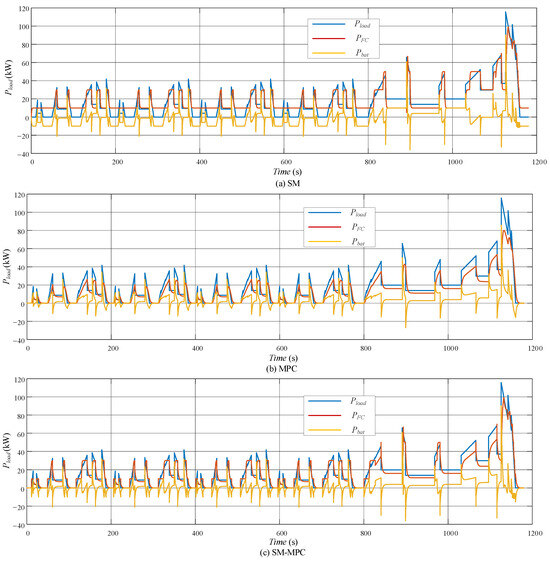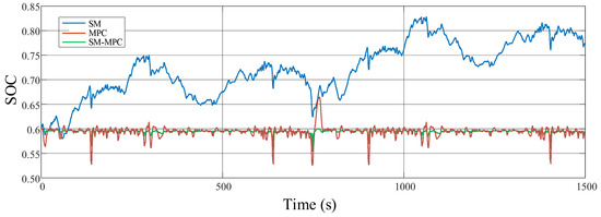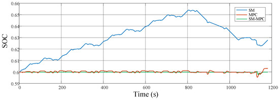 In this subsection, three methods, SM-MPC, SM, and MPC will be compared to verify the effectiveness of the vehicle’s power distribution.
