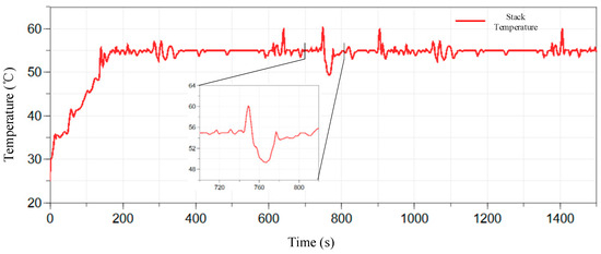 Temperature variation of the fuel cell stack under the PID controller.