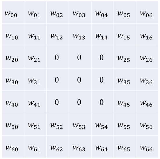 We could envision that most of the kernel weights would have values close to zero and the central weight, , would have a value approximating 1, implying negligible reliance on the surrounding pixels’ information.