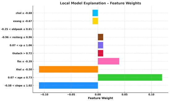Another XAI technique that is worth noting is LIME, which develops interpretable diverse models to approximate the behavior of complex models locally for specific predictions [27]. For the purpose of heart attack prediction, LIME provides clinicians with a means to understand why a particular patient was flagged as high risk by the model by highlighting the most important features contributing to that prediction. Due to this interpretability, healthcare professionals can make better decisions on diagnosis and treatment [28,29]. Although the study does not rely on traditional manual FE techniques, domain knowledge remains integral to interpreting the results. XAI tools are utilized to identify the most influential features, but their clinical validation and interpretation require healthcare expertise. This approach aims to reduce the manual overhead of FE while preserving the critical role of domain-informed analysis in high-stakes applications like heart attack prediction.