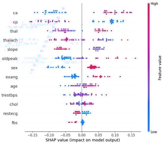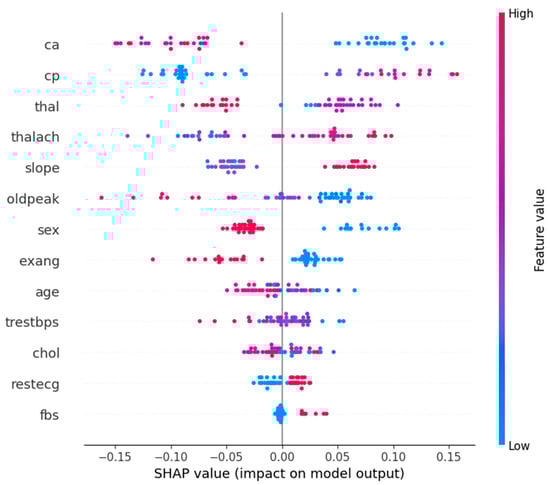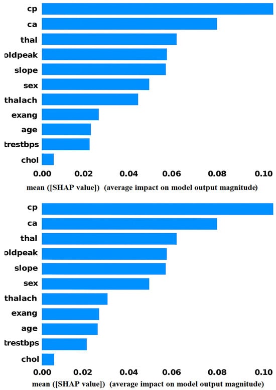To address the above issues, a groundbreaking method called XAI has emerged recently. By offering a more objective assessment of feature relevance than human techniques, XAI provides automated and transparent explanations of feature contributions to the model’s predictions [24]. Furthermore, XAI approaches differ from conventional FE as they reveal latent data linkages, addressing interpretability challenges in complex ML models—an issue particularly critical in industries like healthcare, where patient safety is paramount. One of the most popular XAI approaches, SHAP, utilizes Shapley values, which are based on cooperative game theory, to quantify each feature’s contribution to the model predictions. For the purpose of heart attack prediction, SHAP details the ways in which hypertension and cholesterol influence model behavior on a global scale as well as patient-specific results. Modern black-box models can benefit from SHAP, a state-of-the-art technique for enhancing transparency [25,26], as it provides reliable and consistent explanations.