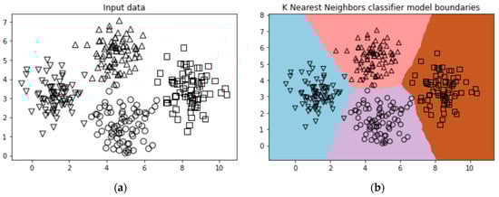 - Guo, G.; Wang, H.; Bell, D.; Bi, Y.; Greer, K. KNN model-based approach in classification. In Proceedings of the on the Move to Meaningful Internet Systems 2003: CoopIS, DOA, and ODBASE: OTM Confederated In-ternational Conferences, CoopIS, DOA, and ODBASE 2003, Catania, Italy, 3–7 November 2003; Springer: Berlin/Heidelberg, Germany, 2003; pp. 986–996. [Google Scholar]