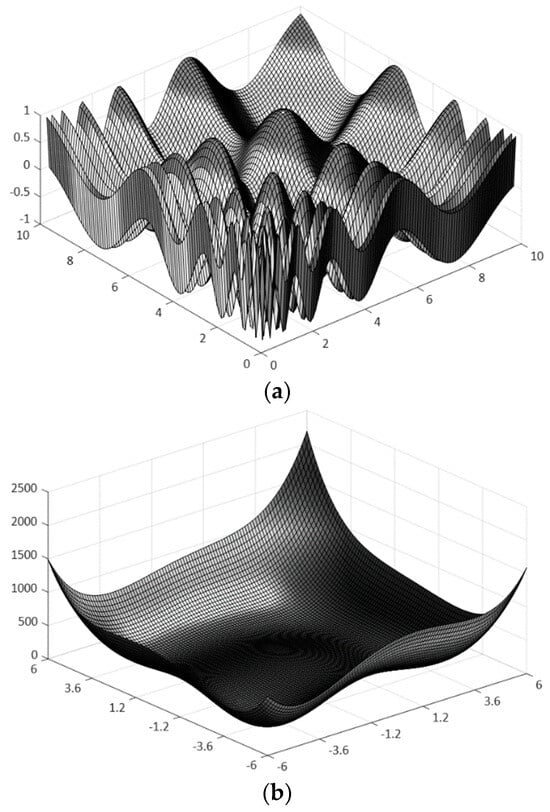 Later, Ref. [] introduced a 20-function benchmark to evaluate and compare niching methods. The benchmark included simple 1D and 2D functions, the Shubert and Vincent (2D and 3D) functions, and more complex composition functions (2D up to 20D). In addition to SR and PR, the authors suggested the convergence speed as a performance measure. The convergence speed corresponds to the Average number of Function Evaluations (AFE) required to identify all global optima at a selected accuracy level . Equation (3) formulates the measure: