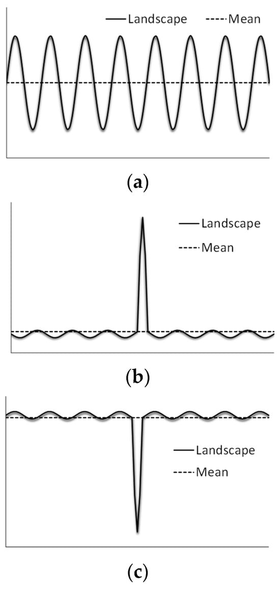 A recognized approach to help search procedures form stable subpopulations around potential multimodal domain zones integrates niching ability into standard search algorithms []. For instance, when applied to the particle swarm optimization algorithm (PSO), this strategy leads to efficient adaptations []. However, most often, it results in methods requiring predetermined information on the landscape structure to define their niching control parameters []. Their ultimate efficiency thus depends on the quality of pre-existing descriptions.