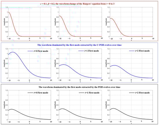 To evaluate the performance of the POD and C-POD methods, a dataset based on the Burgers’ equation was first constructed. The initial conditions and parameters were set as follows: