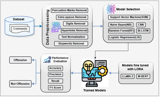 - Naseeb, A.; Zain, M.; Hussain, N.; Qasim, A.; Ahmad, F.; Sidorov, G.; Gelbukh, A. Machine Learning- and Deep Learning-Based Multi-Model System for Hate Speech Detection on Facebook. Algorithms 2025, 18, 331. [Google Scholar] [CrossRef]